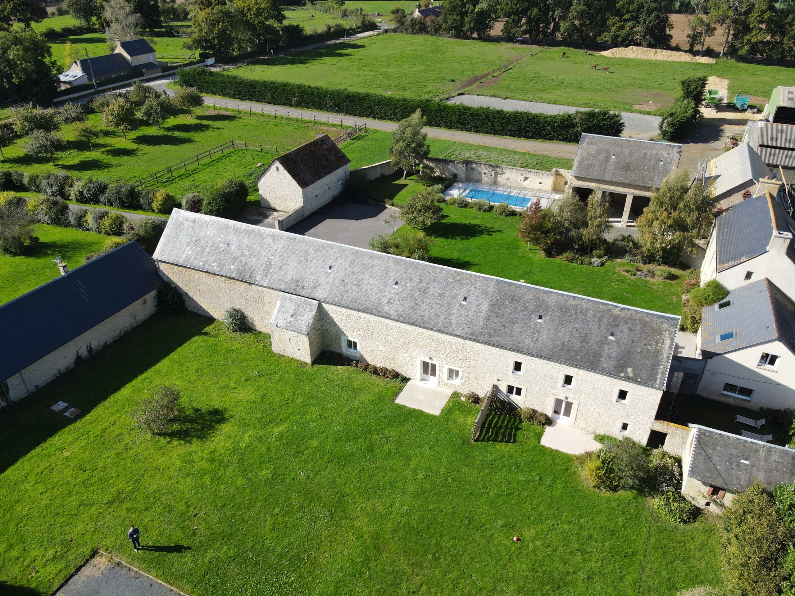 Chambre Golden - L'îlot Pomme Cottage - Gîtes et chambres d'hôtes proche de Bayeux et des plages du débarquement - DDay - Normandie - Le domaine vue du ciel - location de vacance avec piscine